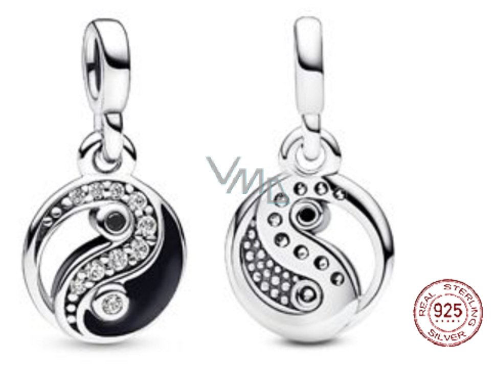 Charm Sterlingové stříbro 925 Jin a Jang - Mini Medailon třpytivý, přívěsek na náramek symbol