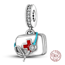Charm Srebrny 925 Lekarz apteczka i stetoskop, zawieszka na bransoletkę zatrudnienia