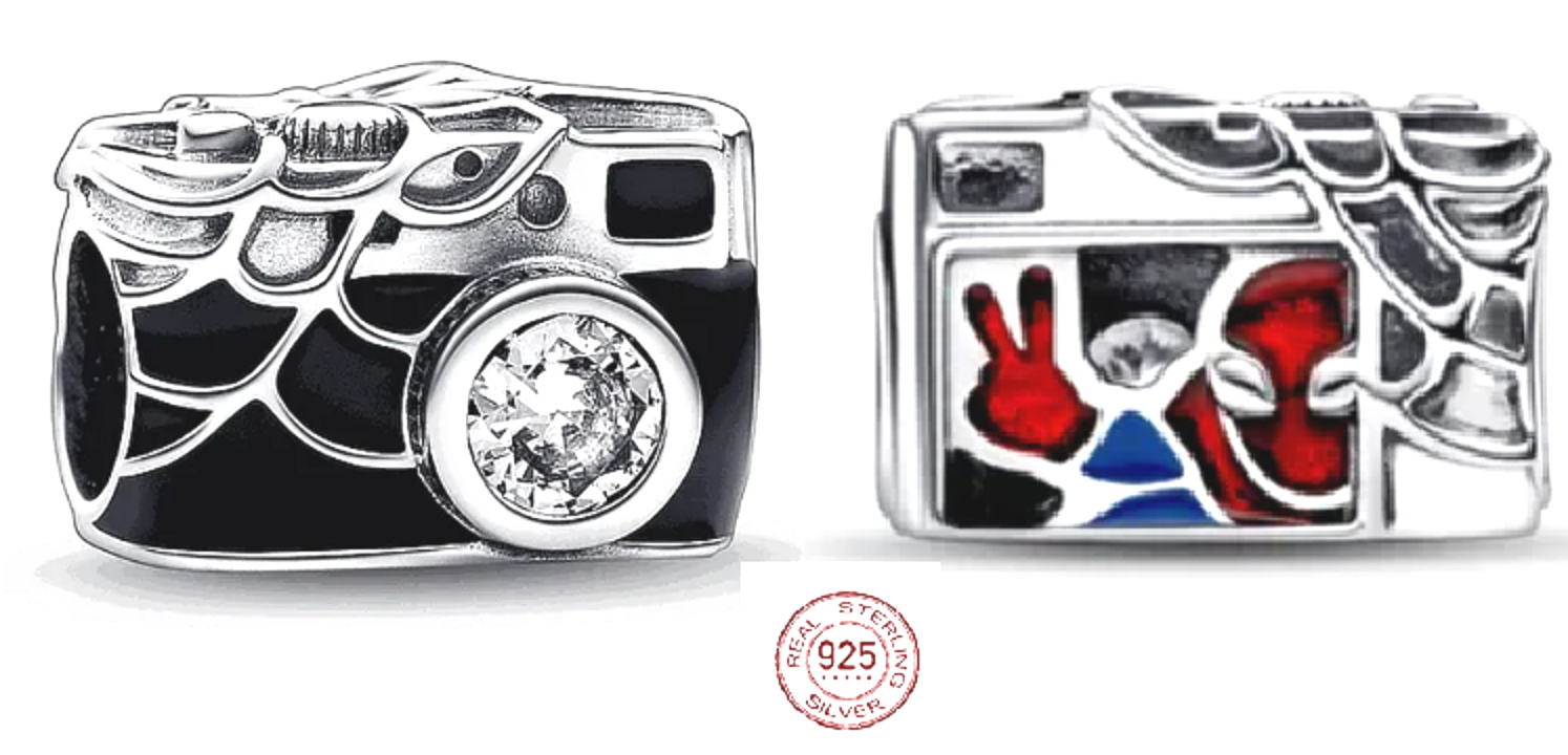 Zawieszka ze srebra próby 925 Marvel Spiderman aparat fotograficzny, koralik do bransoletki