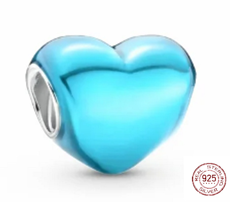 Charm Srebrny 925 Metaliczne niebiesko-zielone serce, koralik na bransoletkę, miłość