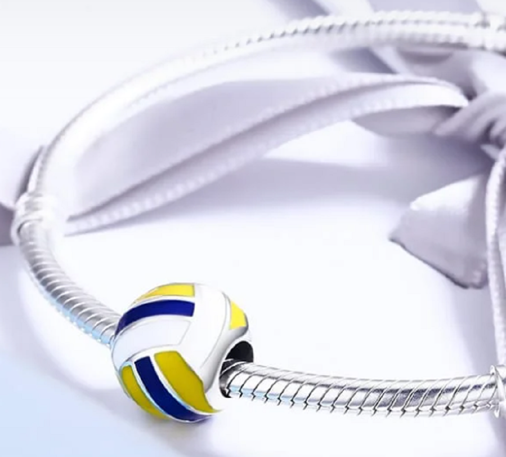 Charm Srebrny 925 Kocham siatkówkę - piłka do siatkówki, zawieszka na bransoletkę sportową