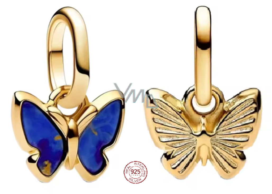Charm Sterlingové stříbro 925 Mini medailon Motýl, modrý malý, pozlacený, přívěsek na náramek zvíře