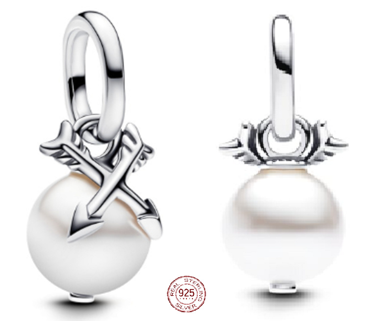 Amorova perla spojuje eleganci s hlubokou symbolikou. Lesklá lakovaná umělá perla je zasazena do mincovního stříbra a doplněna dvěma detailně zpracovanými šipkami, které se kříží. Amorovy šípy představují lásku a směr, což z tohoto šperku činí nádhernou připomínku životní cesty a těch, kteří se vašeho srdce dotkli. Noste jej na stříbrném náhrdelníku, náramku nebo náušnicích a přidejte svému stylu jemné kouzlo.