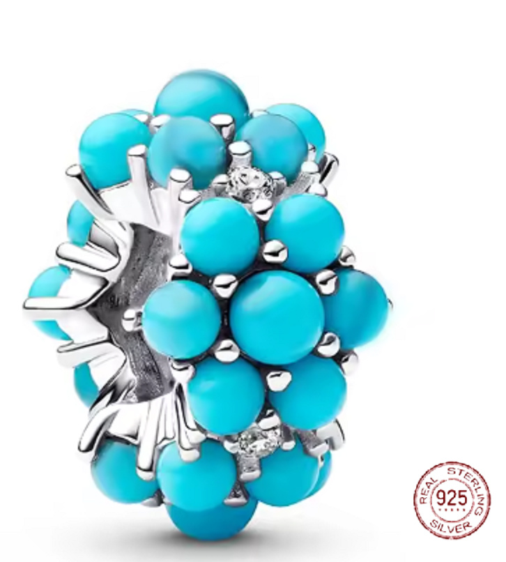 Ponořte se do světa podmořských zázraků s tímto okouzlujícím korálkem Mořská korálová zahrada, inspirovaným bohatstvím oceánu. Zářivě tyrkysové kuličky evokují život v korálovém útesu, zatímco jemné krystalky dodávají šperku jiskru slunečních paprsků odrážejících se od mořské hladiny. Vyroben z pravého sterlingového stříbra 925, tento korálek je mistrovským dílem detailu a elegance.
