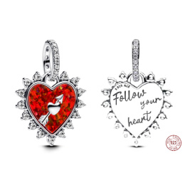 Charm Sterlingové stříbro 925 Opálově červený přívěsek srdce s šipkou, přívěsek na náramek symbol
