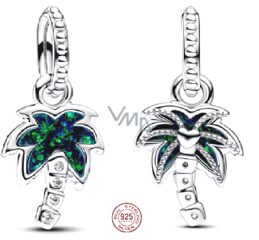 Chcąc stworzyć na swoim nosičzu czarów doskonałą harmonię flory i fauny, dodaj czar uroczej palmy. Zawieszka jest wykonana ze srebra sterlingowego 925 i ozdobiona szeregiem kamieni z cyrkonii oraz kolorowym emalią na liściach palmy.