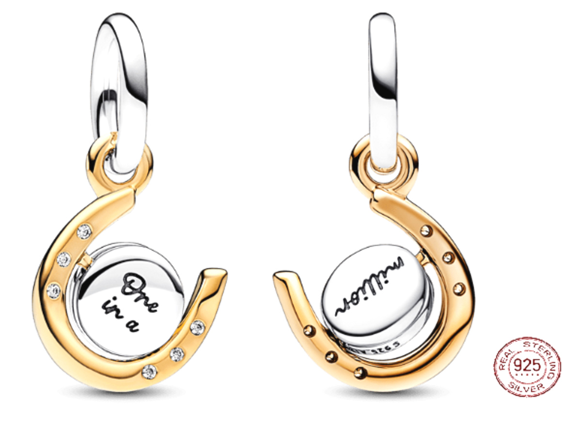 Charm Srebrna podkowa 925 - obracający się dysk, zawieszka na bransoletkę szczęścia