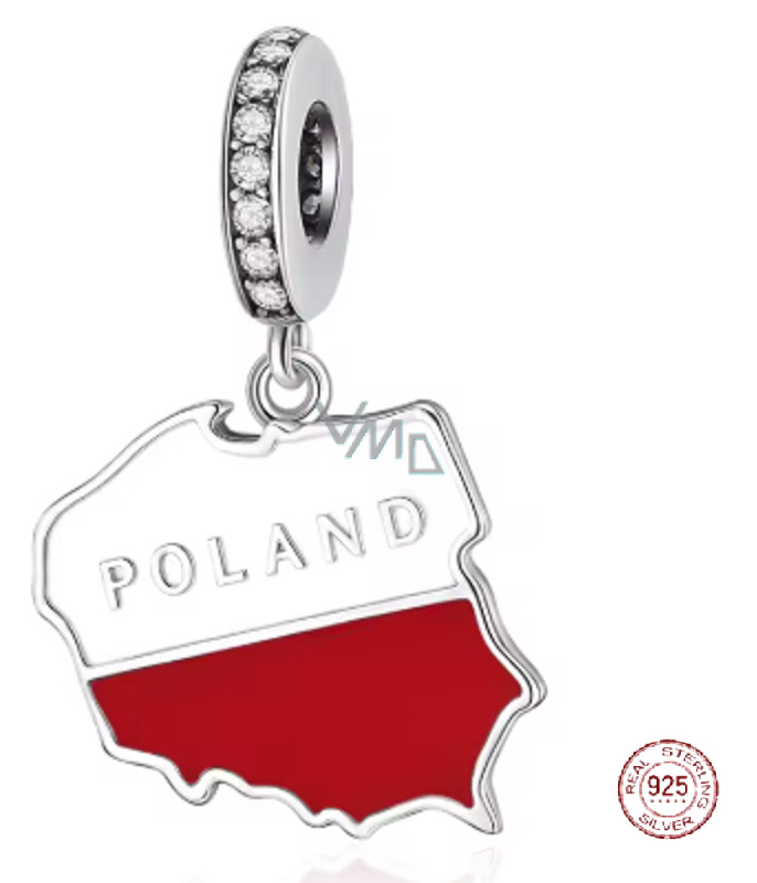 Charm Sterlingové stříbro 925 Polsko vlajka - houpající se mapa, přívěsek na náramek cestování
