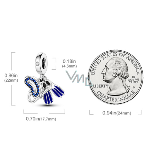 Charm Srebrny 925 do nurkowania, snorkelingu, 3w1 zawieszka na bransoletkę sport