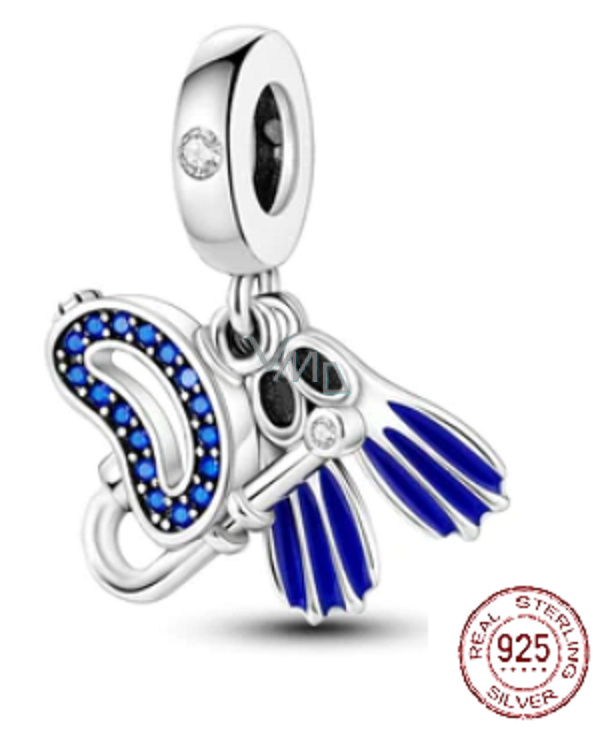 Słońce, morze i nurkowanie - letnie wakacje już pukają do drzwi. Zawieszka 925 Srebrna z zestawem do snorkelingu zaprojektowana z gładkim niebieskim emalią oraz błyszczącymi niebieskimi i białymi kamieniami szlachetnymi cyrkonu.