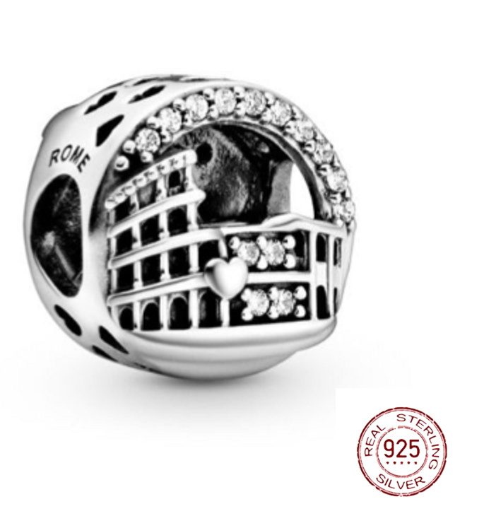 Pomyśl, co przywieziesz z podróży z Rzymu? Kup ten srebrny dodatek do bransoletki z motywem rzymskiego Koloseum i wspomnij o tej podróży, kiedykolwiek spojrzysz na swoją bransoletkę.