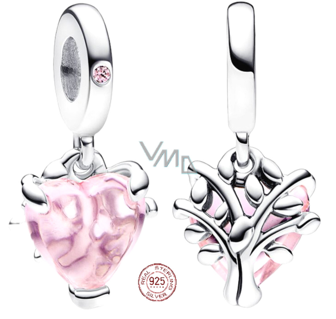 Charm Srebrny 925 Różowe drzewo życia, jedno serce, jeden pochodzenie, zawieszka na bransoletkę rodzina