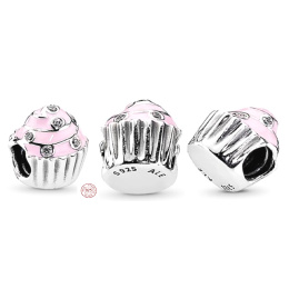 Zawieszka ze srebra 925 Słodki cupcake, koralik do bransoletki, jedzenie i picie