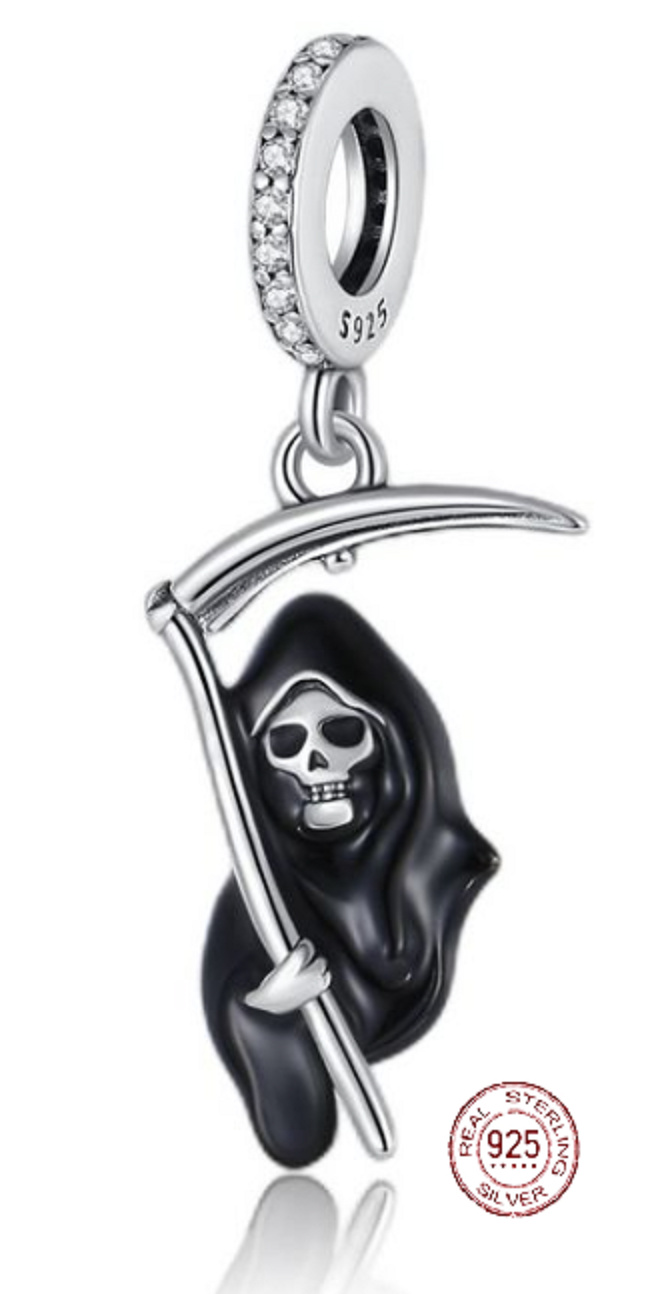 Zawieszka ze srebra 925 Śmierć z kosą, charms do bransoletki Halloween