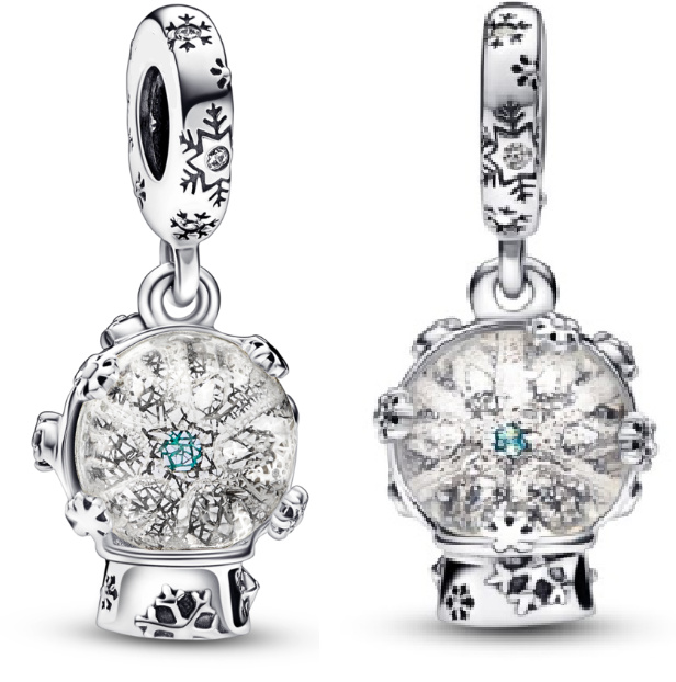 Złap odrobinę magii świątecznych chwil wiszącym charms Sněžęka z śnieżnymi płatkami. Zawieszka ze srebra i szkła Murano tworzy motyw śnieżnego płatka otoczonego kryształkami w szklanej kuli, co wywołuje osobisty magiczny efekt. Dopracowany element wymaga wysokiej precyzji ręcznej pracy, ponieważ zawiera wiele detali, w tym trzymane i wypolerowane śnieżne płatki na podstawie, rozproszone w kuli śnieżnej i na zawieszce. Po obróceniu zawieszki można zobaczyć napis wygrawerowany na podstawie „One in a Million“ (Jedna z miliona). Specjalny prezent dla ukochanej osoby lub magiczny dodatek do stylizacji biżuterii.