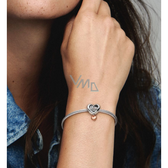 Zawieszka ze srebra próby 925 Serce i napis Dziękuję, mamo, koralik do bransoletki rodzina