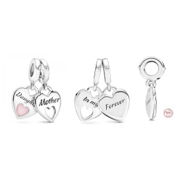 Charm Srebrna 925 Srdíčkové přívěsky Matka a dcera - double heart, 2v1 přívěsek na náramek rodina