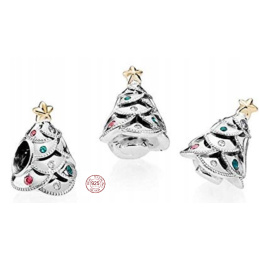 Zawieszka ze srebra próby 925 Boże Narodzenie mała choinka srebrna, koralik do bransoletki święta