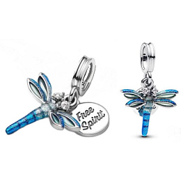 Přívěsek inspirovaný Vážkou tančící ve větru, symbolizuje přijetí změn a život v přítomnosti. Průhledný smalt dodává křídlům Vážky lehkost a na jejím těle se leskne holografický třpytivý smalt. Oči Vážky tvoří třpytivé kamínky a kulatá destička za ní nese nápis „Free Spirit“. Vážka je silný symbol pro svobodné povahy. Jedná se o talisman pro vnitřní sílu, svobodu a radost, objevuje se v mnoha kulturách po celém světě.