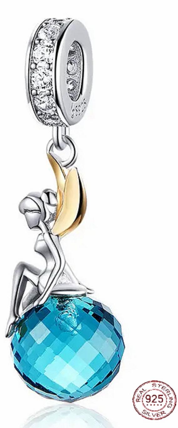 Charm Srebrny 925 Wróżka z niebieskiej planety, zawieszka na bransoletkę bajka