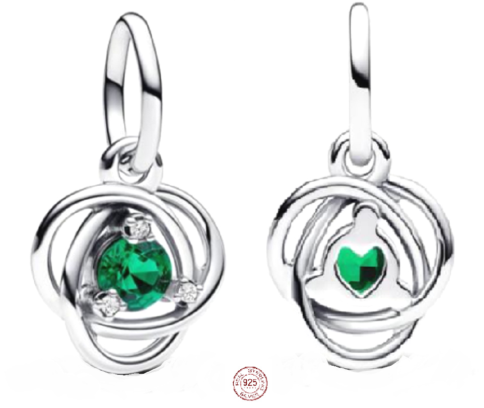 Charm Srebrny 925 Zielony krąg zwycięstwa maj, zawieszka na bransoletkę symbol