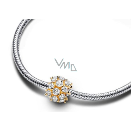 Charm Srebrna 925 Złote błyszczące okrągłe czar, koralik na bransoletkę symbol