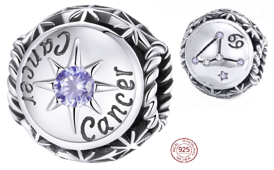 Charm Srebrny 925 Znak Zodiaku, cyrkonie Rak, koralik na bransoletkę