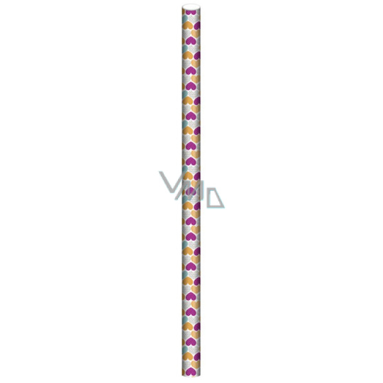 Ditipo Dárkový balicí papír 70 x 200 cm bílý barevná srdíčka