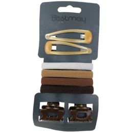 Mějte účes pod kontrolou za všech okolností s touto praktickou sadou vlasových doplňků. Obsahuje 4 látkové gumičky v různých barvách, 2 pevné skřipce a 2 sponky typu lupkačka, díky kterým snadno vytvoříte účes podle potřeby – ať už na běžný den nebo speciální příležitost.