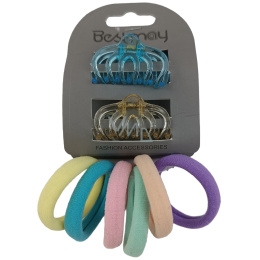 Objevte univerzální sadu vlasových doplňků, která vám usnadní každodenní úpravu účesu. Balení obsahuje 6 látkových gumiček v různých barvách a 2 skřipce, díky kterým snadno vytvoříte elegantní i ležérní styl.