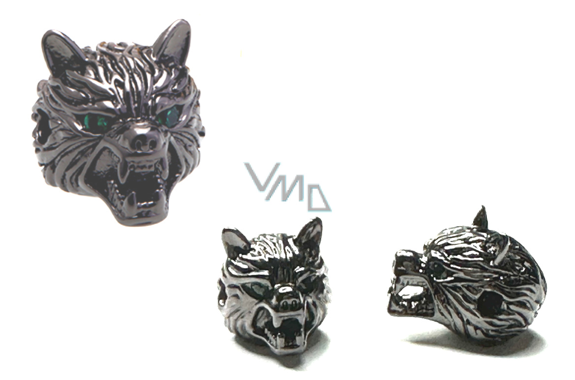 Głowa wilka, cyrkonie, metalowe koraliki do biżuterii.