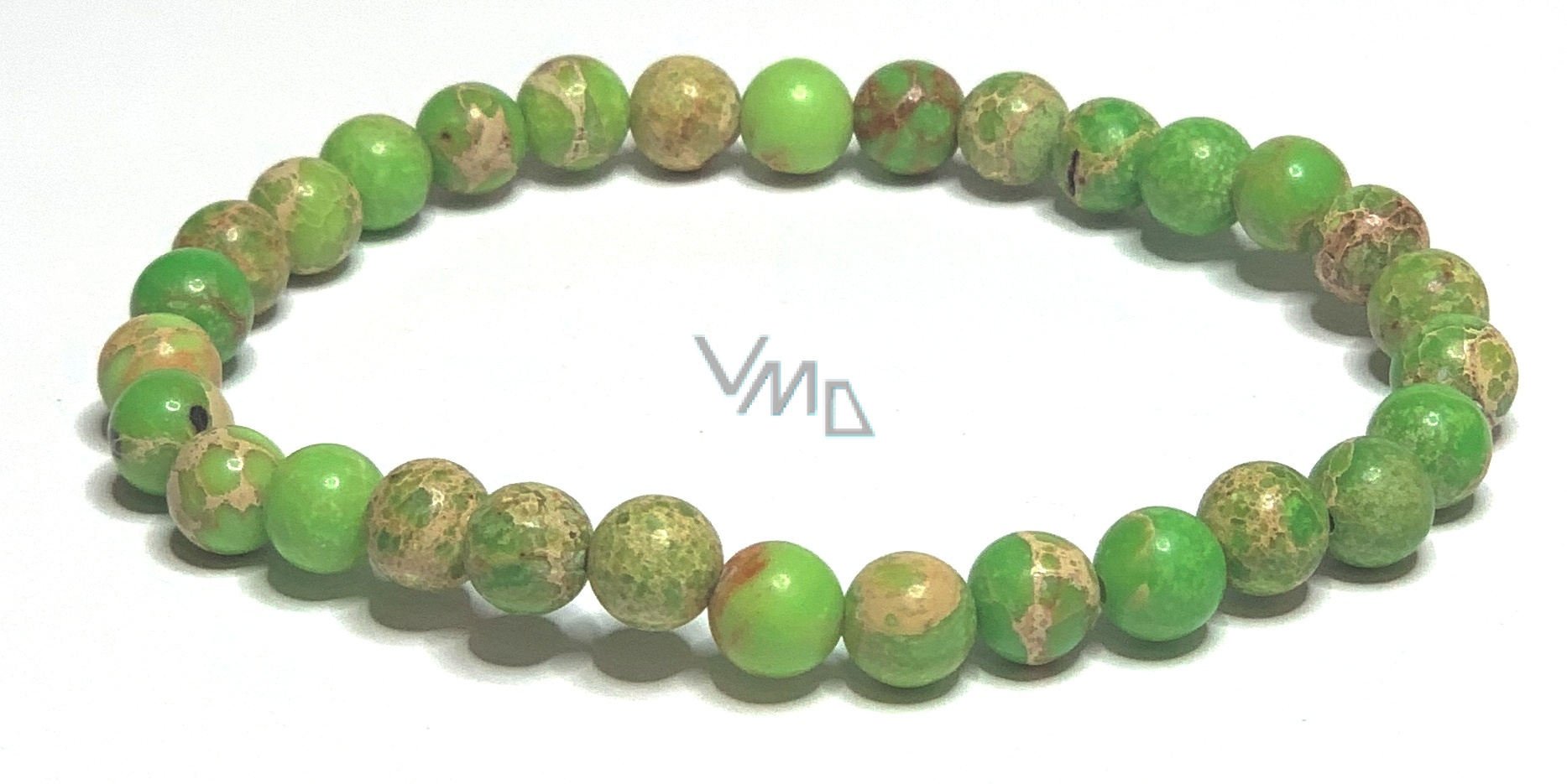 Jaspis / Regalit Imperialny morski osad zielony bransoletka elastyczny mieszany minerał, kulka 6 mm / 16 - 17 cm