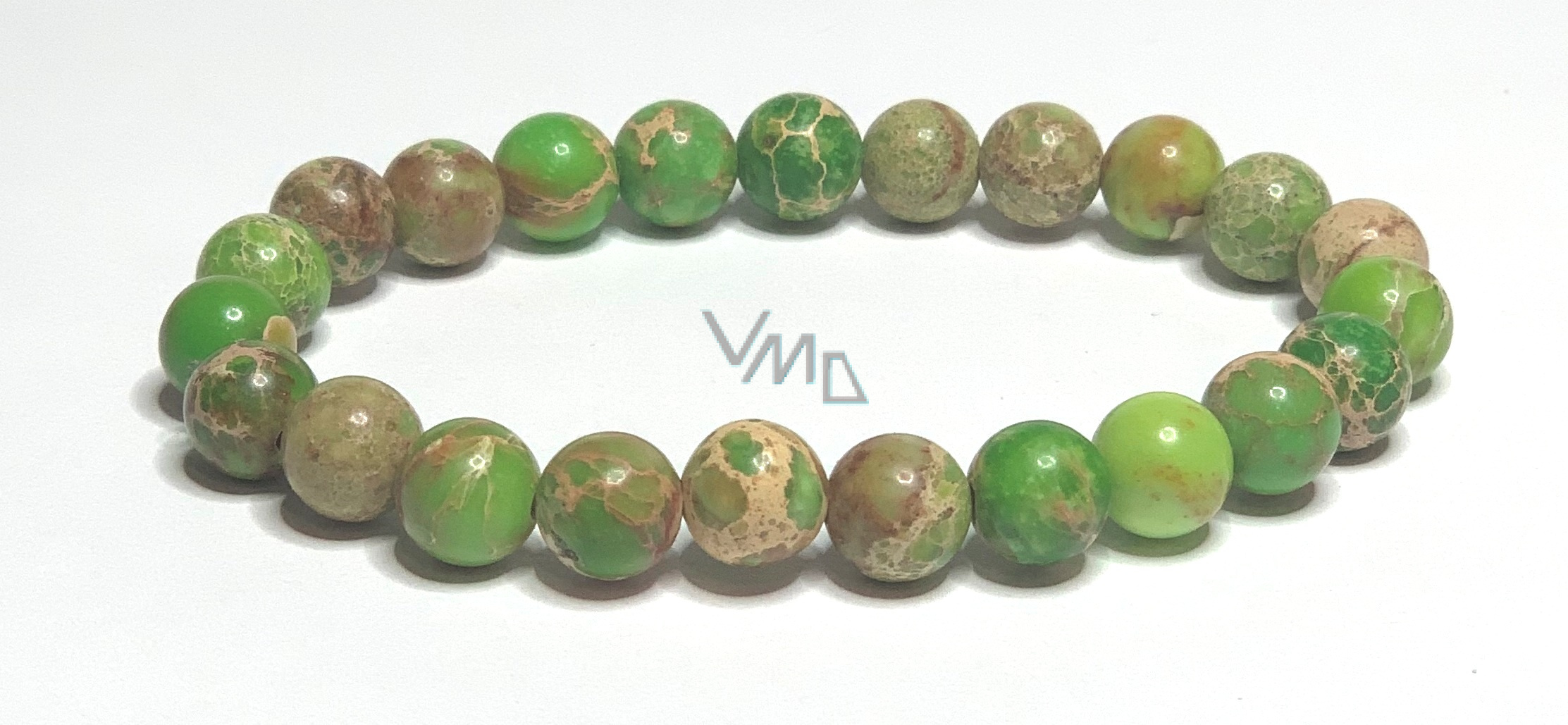 Jaspis / Regalit Imperialny morski osad zielony bransoletka elastyczny mieszany minerał, kulka 8 mm / 16 - 17 cm
