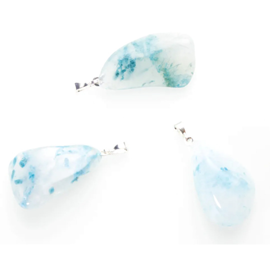 Pod nazwą aqualite kryje się kwarc z inkluzjami apatytu - jego drobne niebieskie kryształki prorosły kwarcową żyłą i zabarwiają ją w piękne niebieskie i niebieskozielone odcienie. Ten unikalny kamień pochodzi z Republiki Południowej Afryki.