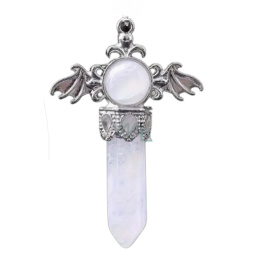 Krzyż zę stopu i kamienia naturalnego 5,3 x 3,7 x 12 mm, kamień kamienny