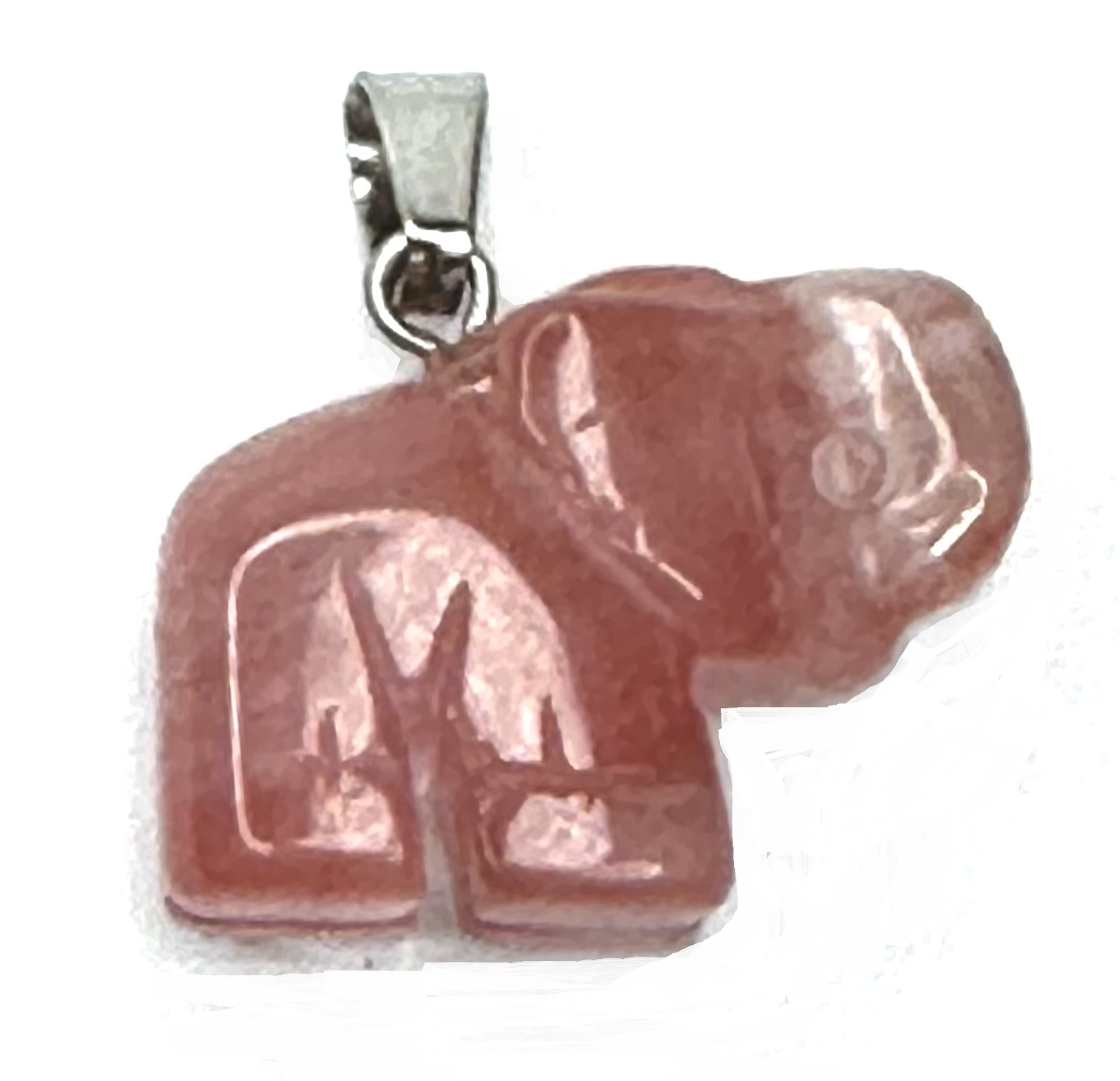 Różowy Słoń wisiorek naturalny kamień, ręcznie szlifowana figurka 1,8 x 2,5 x 8 mm, kamień kamieni
