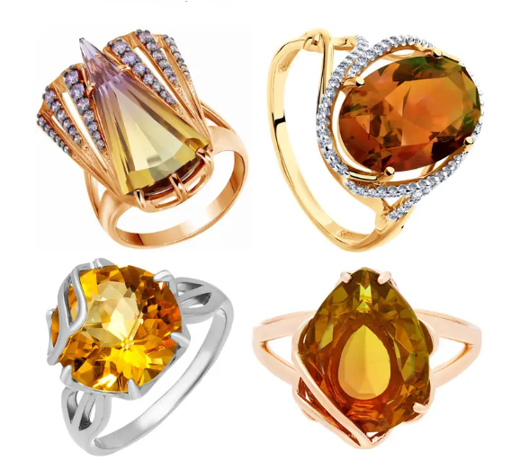 - Kameny jsou orámovány stříbrem nebo zlatem, kombinované s bílými nebo barevnými kubickými zirkony.