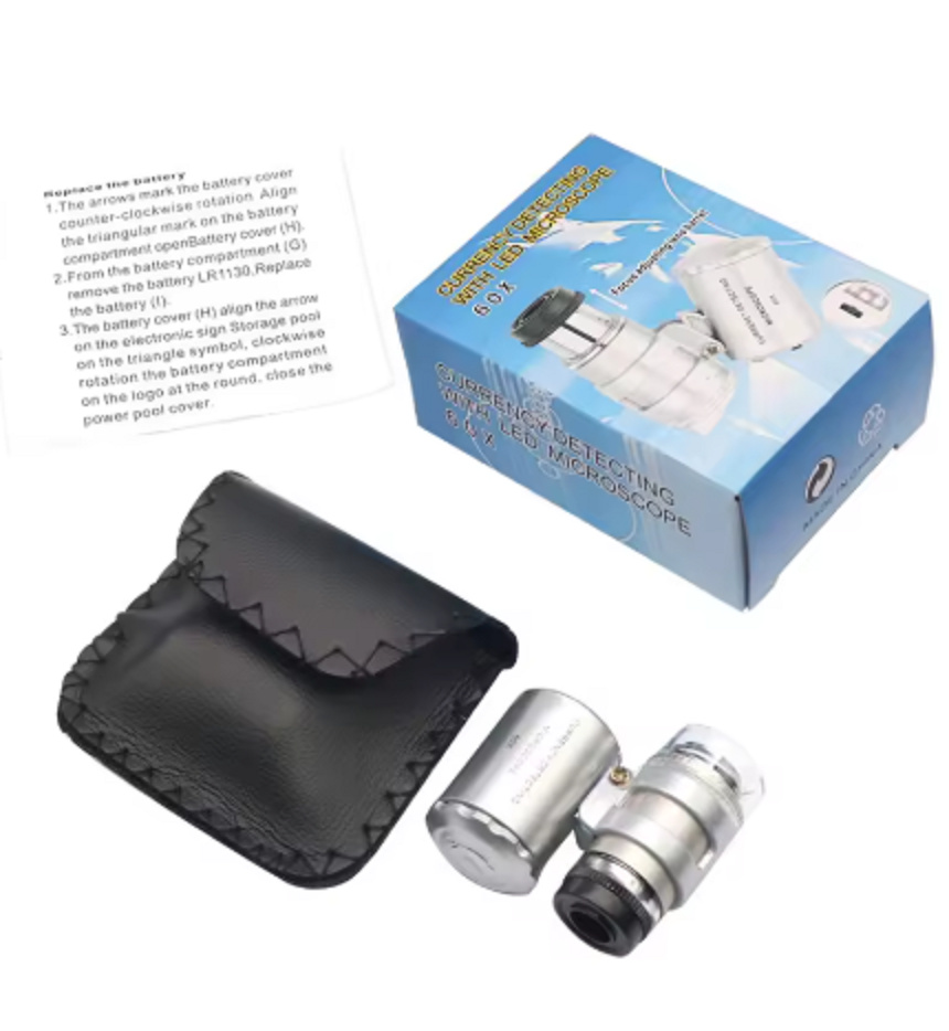 Prémiová kapesní lupa 60x s LED a UV světlem – ideální pro klenotníky i sběratele