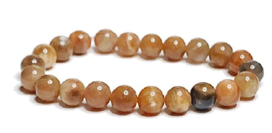 Miesięczny kamień alias miesiączka. Kamień jest unikalny swoim delikatnym kołyszącym drżeniem, które się intensyfikuje przy odpowiedniej orientacji kamienia podczas szlifowania. Pomarańczowy miesiączek szczyci się pięknym perłowym blaskiem. Pochodzi z Indii.