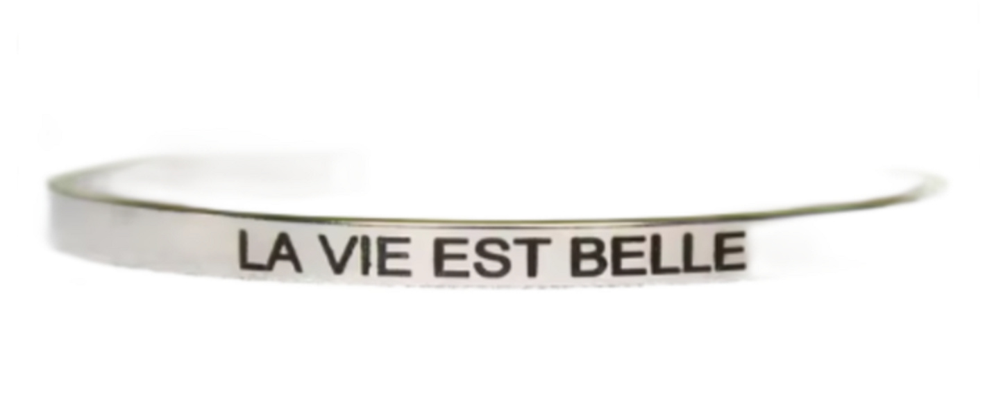 Bransoletka ze stali nierdzewnej z grawerem “Život je piękny”, otwarta mankieta, 4 mm
