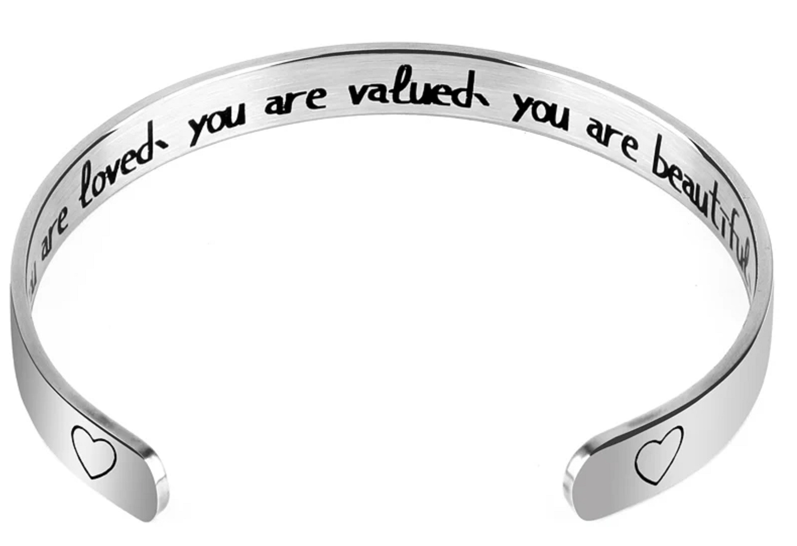 Nerezowa stalowa bransoletka srebrna z grawerunkiem Jesteś kochany..., otwarta mankiet, 2,5 mm