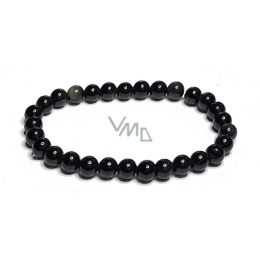 Obsidian náramek elastický přírodní kámen, kulička 6 mm / 16 - 17 cm, kámen záchrany