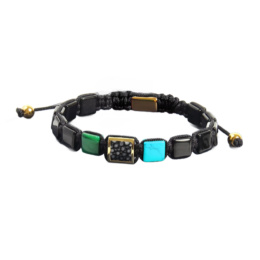 Onyx, malachit, tyrkenit - uprostřed rejnok náramek přírodní kámen, velikostně nastavitelný, kámen životní síly, kámen hojnosti a kámen mladých lidí