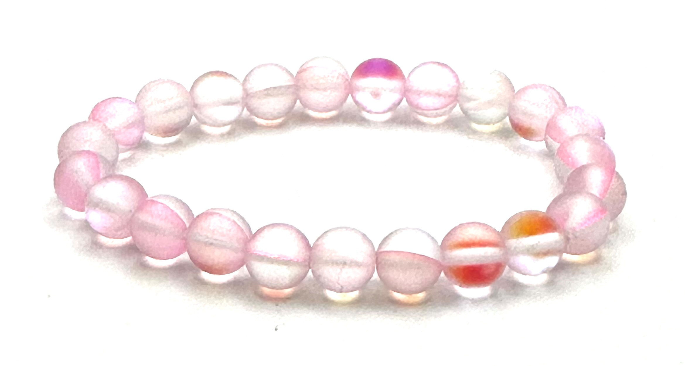 Opalit różowy matowy bransoletka elastyczna, syntetyczny kamień kuleczka 8 mm / 16 - 17 cm, kamień przyjaźni i nadziei