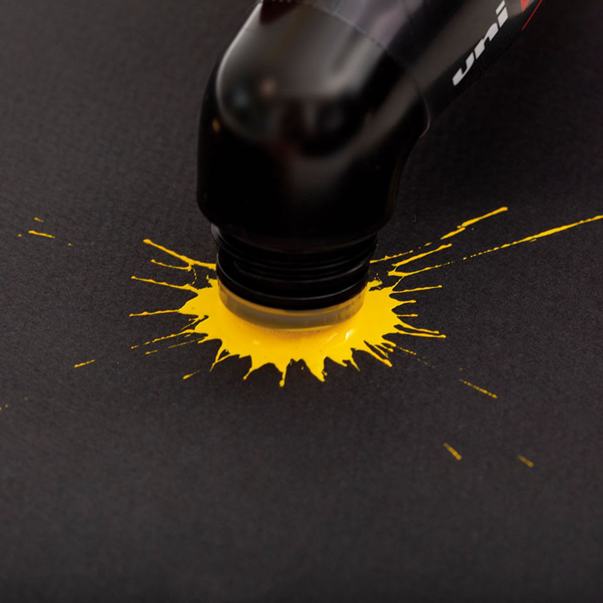 Nowy marker wielkoformatowy z okrągłym końcówką i doskonałym uchwytem do projektów XXL. Można go używać zarówno na pionowych, jak i poziomych powierzchniach. Umożliwia szybką pracę, jest idealny do wypełniania dużych powierzchni kilkoma pociągnięciami lub bardzo szeroką linią. A jeśli chcesz uzyskać efekt płynącej farby, wystarczy go obrócić. Jest intuitywny i zabawny, doskonałe narzędzie, które zaspoKoi nawet najbardziej dzikie pomysły.