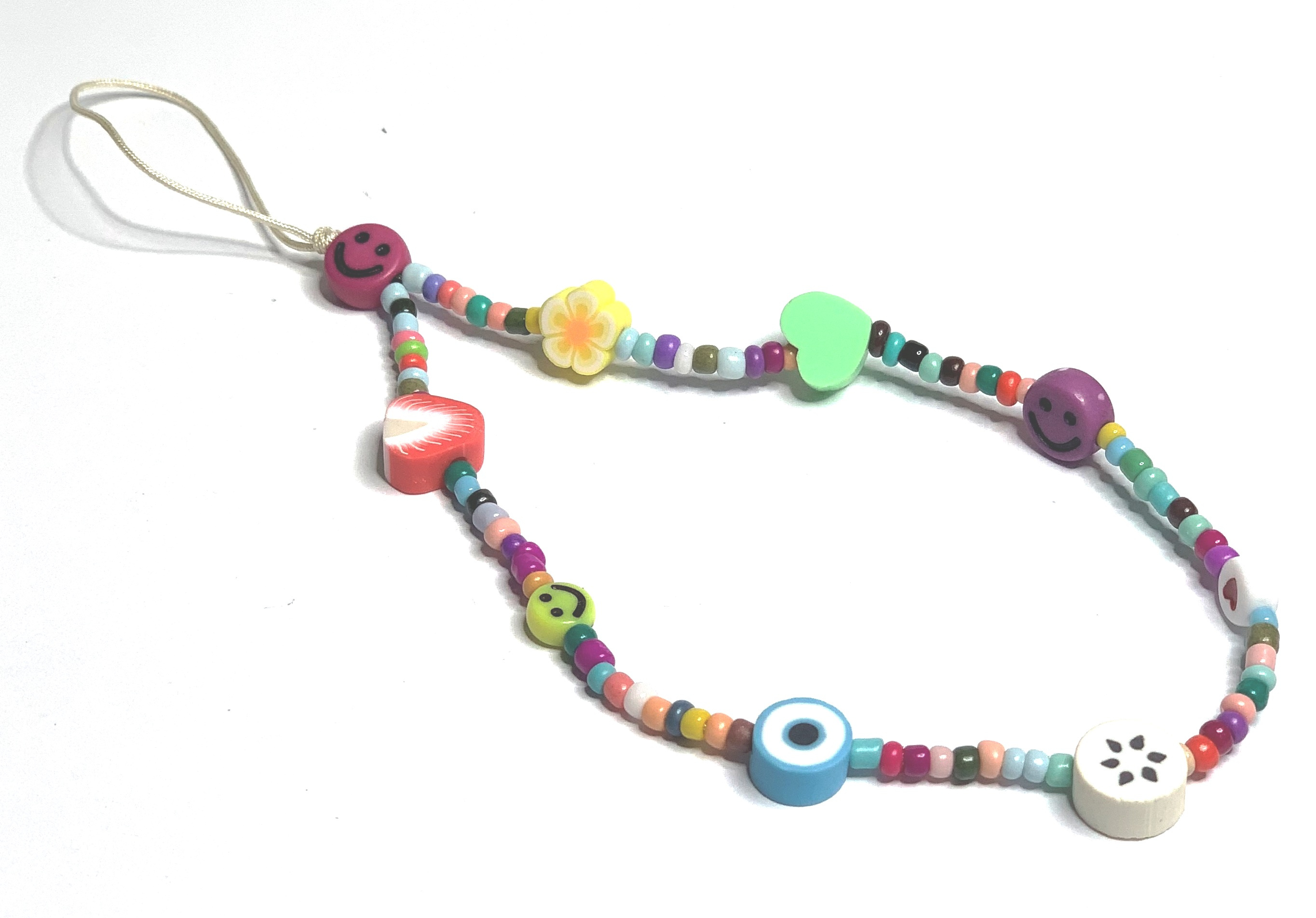 Přívěsek na mobilní telefon proti ztrátě s korálky, ovocem, love, obvod 26,5 cm