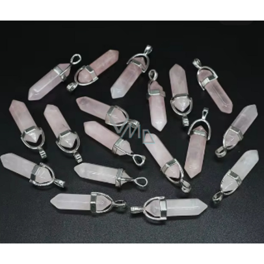 Wahadło różowego kwarcu sześcioboczny pryzmat naturalny kamień 41 x 13 mm, kamień miłości