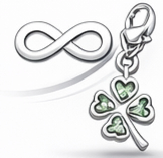 Srebrny koralik w kształcie koła ozdobiony jest symbolem siły - czterolistnym koniczyną. Koralik czt