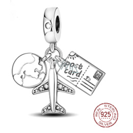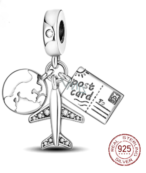 Srebrny naszyj 925 Podróżny naszyj 3w1, globus, paszport, samolot