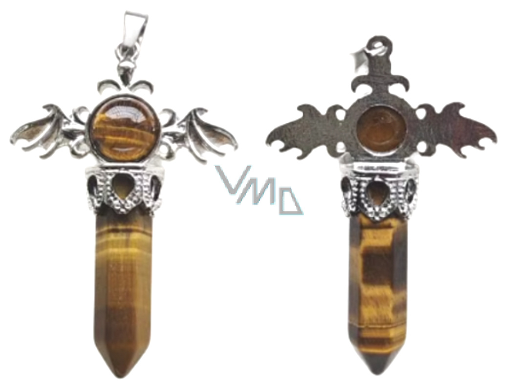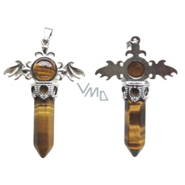 Tygrze oko wisiorek ze stopu i naturalnego kamienia 5,3 x 3,7 x 12 mm, kamień słońca i ziemi, przynoszący szczęście i bogactwo